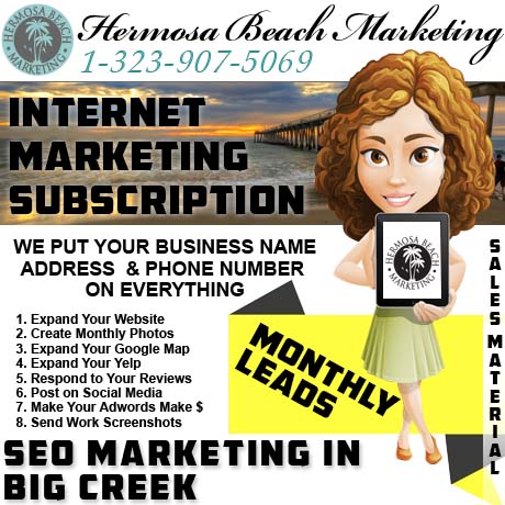 The Presidential Power Package will act as your part-time employee, where getting our packages done are key to your business’ success in “Big Creek“. Technicians will write, design, program, post, and respond on your behalf every month. You’ll never have to touch the website, computer, “seo“, “internet marketing“, social platforms, or internet ads programs again. We’ll handle all the chores of internet marketing to promote your business at a price point that your business can afford.