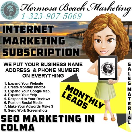 Encourage people to come to your shop using “seo” and “internet marketing” on a monthly basis with a sales material creation subscription (for search results) called the Presidential Power Package. “Colma, CA” is a great location to make sales material for; potential cash can come through the area every hour while searching online. Give a search engine the choice to use your business’ details in a search result more often by signing up for our bundle today.