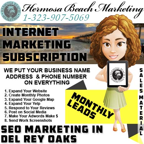 Marketing is the art of getting what you want through risk and reward. Hermosa Beach Marketing offers websites, “seo internet marketing”, social postings, reports, numbers, and advertising too. Our staff loves doing all sorts of one-time digital work, but if you want monthly work in “Del Rey Oaks”, then ask about that too (because a standardized monthly bundled plan minimizes risk and raises reward).