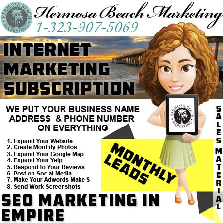 Everything your business no longer has time for, is included in our monthly package. Computer costs, security costs, programming costs, “seo” costs, “internet marketing” costs, time-saving communication, time-saving social media posting, installation costs, and more. All the stuff that you always NEVER wanted to do for a living is done for you, and your search results – starting in “Empire” outward. Easy is the advantage of a bundle; call Hermosa Beach Marketing today.