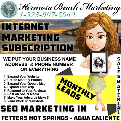 Sales material for “Fetters Hot Springs-Agua Caliente” search results must compete with the larger advertising budgets for wine and tourism. Being able to financially handle advertising (7 days a week) is the goal of our two businesses working together. You are not required to be on the phone or know how to use a computer in order to be a Presidential Power Package customer. The extent of your commitment can be the calling and ordering of our service today.
