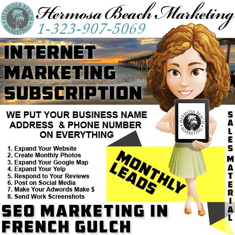 You moved out into the mountains; good for you. Now you freaked out because your business needs search engine sales material to survive. We’ll make some for you, do some “seo internet marketing”, and get your search advertising to work for “French Gulch” search results or somewhere else. Don’t freak out so much; the Presidential Power Package is an easy solution to expand the reach of your business with great technicians helping you along the way. The possibilities are endless (while we free up your time for other things); just sign up by phone and get started today.