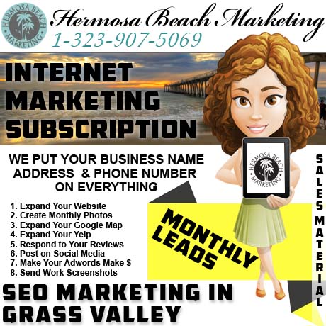 When you sign up for our service, you’ll receive sales material created, written about, designed, posted, promoted for free, and programmed to pay to advertise. The result of our service is an over-Neanderthal-ed amount of un-avoidable sales material with your business’ details on them – starting in “Grass Valley” and/or beyond. Whew! That’s a ton of sales material that you didn’t have to make or promote yourself!