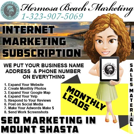 We like the concierge approach to “seo internet marketing” in “Mount Shasta”. Our company has a technical marketing bundle called the Presidential Power Package, that we can tailor towards making sales material for tourism tour stops. If we can push sales material into the search results to add your restaurant or tire shop as a place on a tour (like a free parking location), then we can ensure that somebody each day that doesn’t belong here, sees your sign in person.