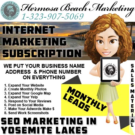 If you live and work in “Yosemite Lakes, CA“, then try our “seo internet marketing” monthly service called the Presidential Power Package. People in L.A. will be doing computer marketing while you’re at work. This way, you’ll be able to build a business and service the people that pay you at the same time. If you’ve got more than 1 website, then try our service on 1 for Madera County, and try our service on the 2nd for the other side of the park.